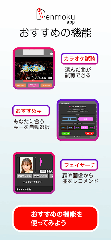 اس کے علاوہ، اسمارٹ فون ایپ ایسی خصوصیات سے بھری ہوئی ہے جو کراوکی کو مزید پرلطف بنائے گی، جیسے کہ آپ کو اپنی فہرست اور فہرست کا نظم کرنے، اپنے اسمارٹ فون پر تصاویر کو کراوکی کے پس منظر کے طور پر استعمال کرنے، ایسے گانے سنیں جو آپ کو مبہم طور پر یاد ہوں، اور ایسی چابیاں تجویز کریں جو گانا آسان ہوں۔