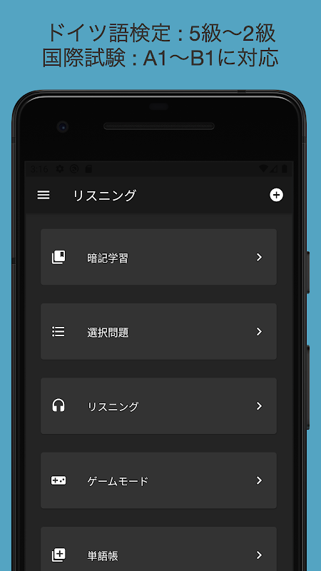 当アプリは全くドイツ語が聞き取れない学習者がネイティブの会話を理解できるようになるために、レベル別に問題を配置、基礎的なリスニング力が身につくよう、独自のメソッドでアプリを作成いたしました。
