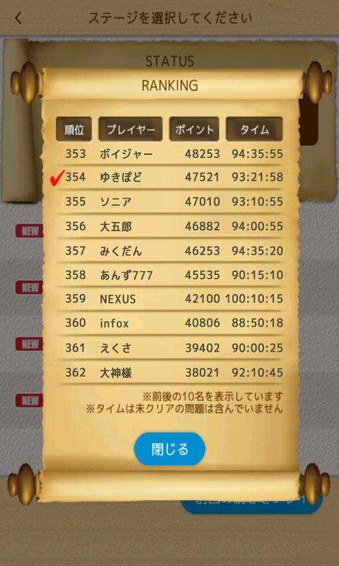 何人がプレイしていて、自分の成績が何位なのか分かります。