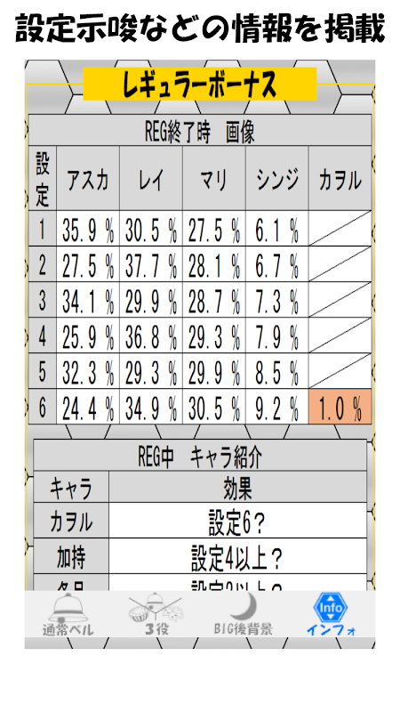 当画面は閲覧専用で、設定示唆などの情報が掲載されています。