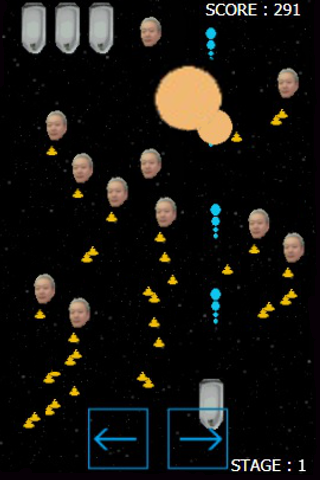 敵の弾が自機に向かって飛んできます。STAGEが進むにつれて敵の弾が多くなります。自機が3回敵の弾に破壊されるとゲームオーバーですが、またりプレイできます。SCORE:2000点でSTAGEクリアです。