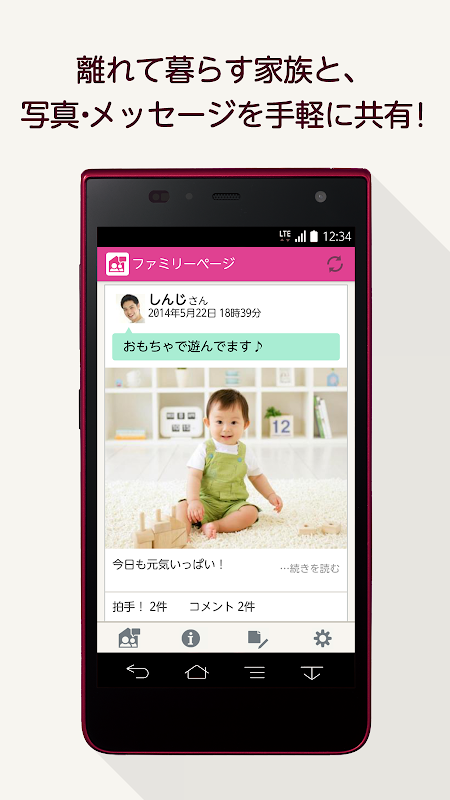 家族で写真・メッセージをかんたんに共有!拍手!やコメントで楽しく交流できます。