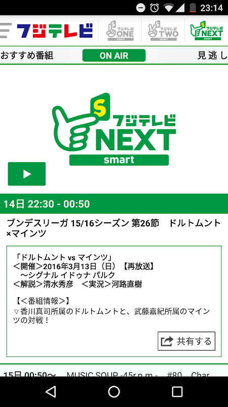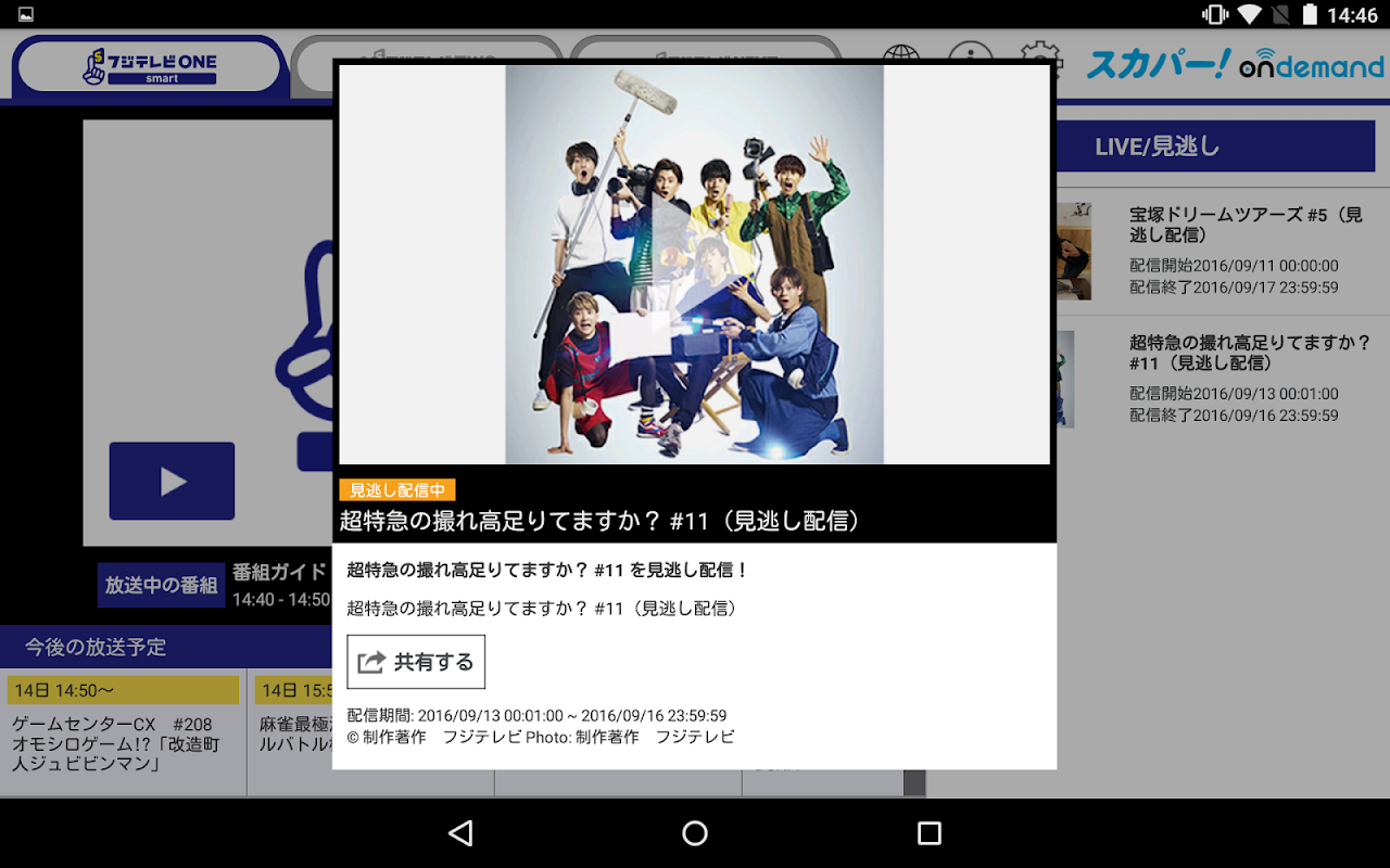 フジテレビONE/TWO/NEXTsmartアプリ for スカパー!でいつでも、どこでも、