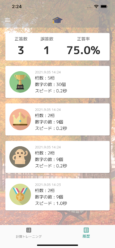 数字の桁数、数字の数、表示されるスピードを自由に設定して様々な難易度で楽しむことができます。