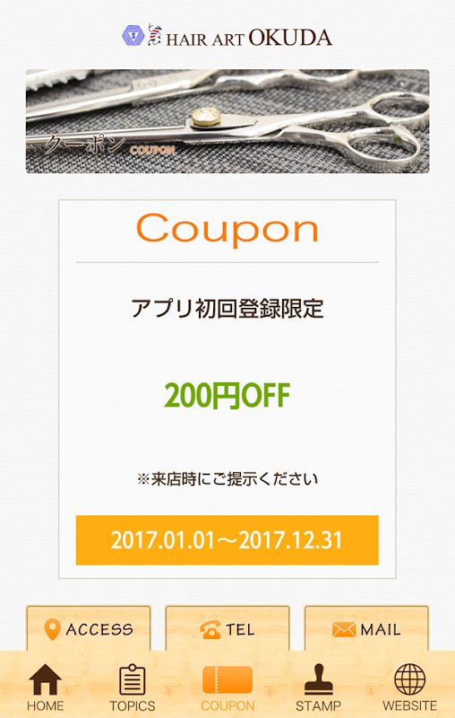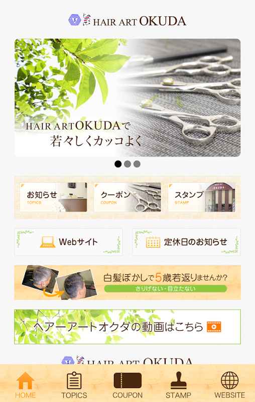 یہ "اس دکان کی ایپ ہے جس پر میں ہمیشہ جاتا ہوں۔ Kawanishi City میں Hair Art Okuda" کی آفیشل ایپ ہے۔