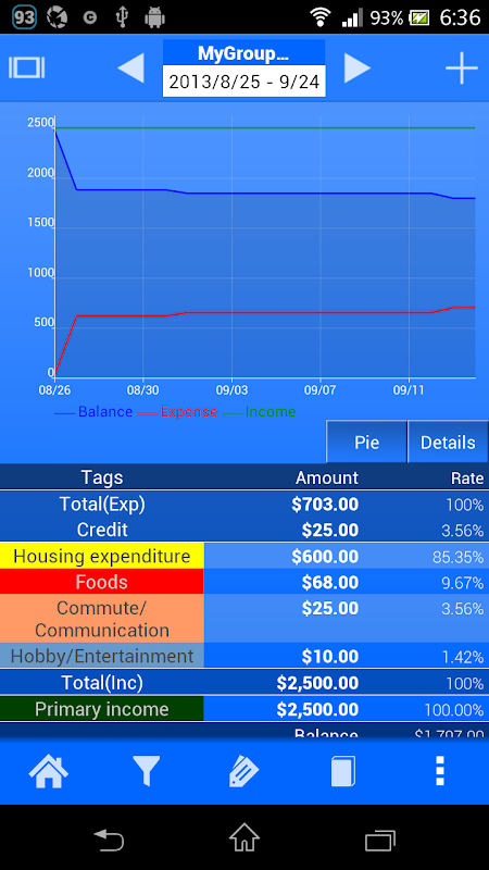 اسپینڈرایڈ آپ کے خرچ کرنے کی عادات کو ضعف سے تجزیہ کرنے کے ل many بہت سارے مفید ٹولز بھی پیش کرتا ہے جن میں فلٹرز ، فلٹر سیٹ ، چارٹ اور گروپ اکٹھا کرنے کی خصوصیات شامل ہیں۔