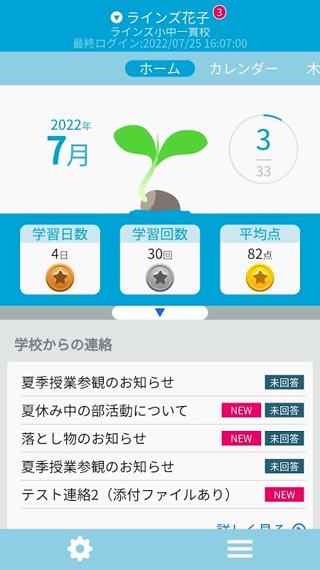 ・آپ حقیقی وقت میں اپنے بچے کی سیکھنے کی حیثیت، نقطہ نظر کا رویہ وغیرہ چیک کر سکتے ہیں۔ پیرنٹ ایپ کو سیکھنے کی حیثیت کی پش اطلاعات بھیجنے کے لیے بھی سیٹ کیا جا سکتا ہے۔