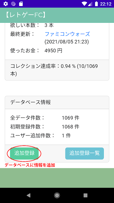 レトロゲームを管理するアプリFC 1.6