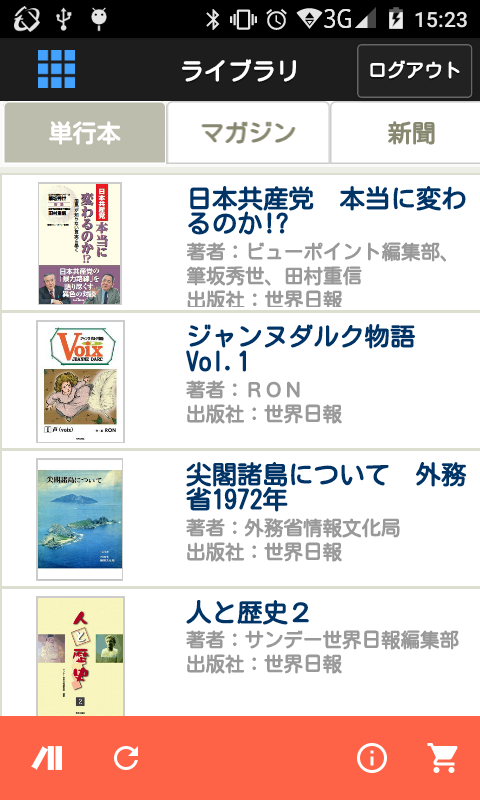 世界日報社の電子書籍を閲覧するためのビューアです。コンテンツはクラウド上に置かれ、ウィンドウズ版の世界日報ビューアと最終閲覧ページを共有します。