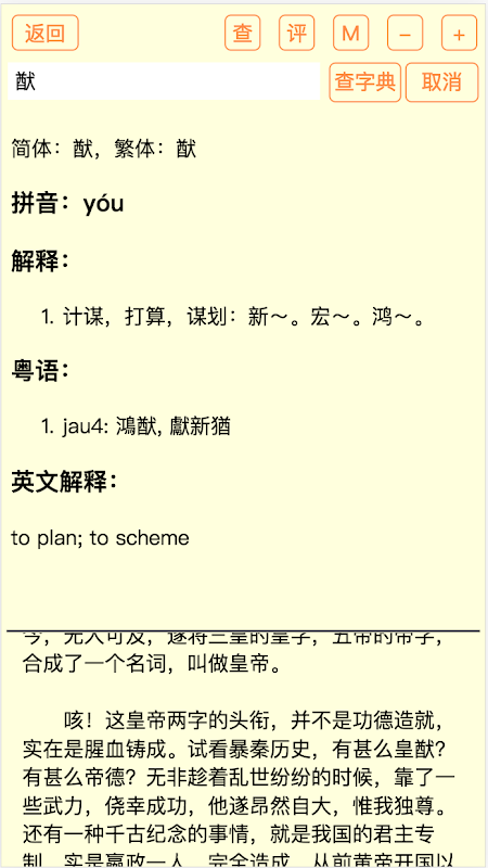 本应用收集了蔡东藩先生写的《中国历朝通俗演义》,时间跨度自秦始皇到民国九年。自带听书功能,支持国语和粤语。