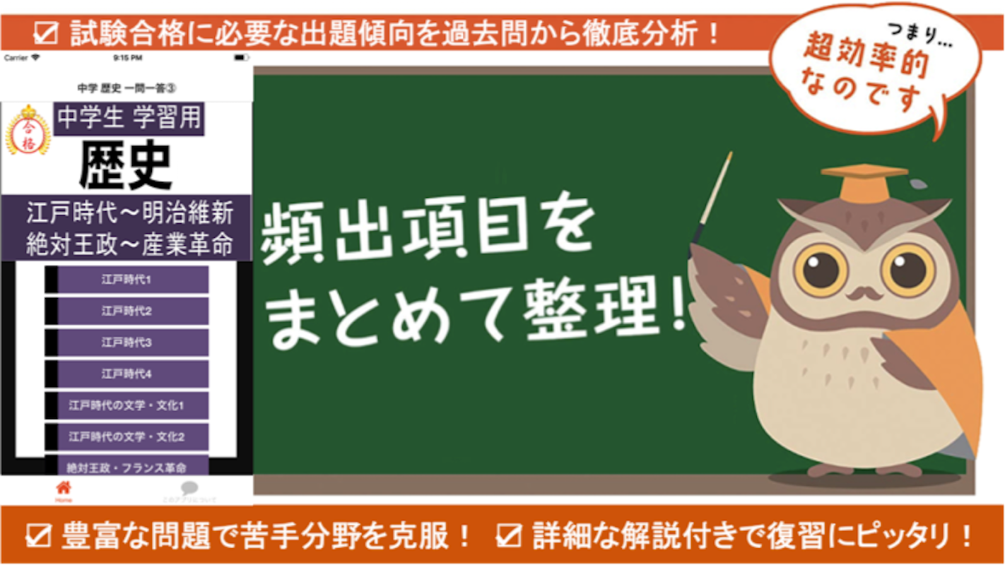 中学生が、高校受験や定期テストに向けて、ポイントを押さえてなるべく楽に、歴史を勉強することを目的として作成したアプリです。