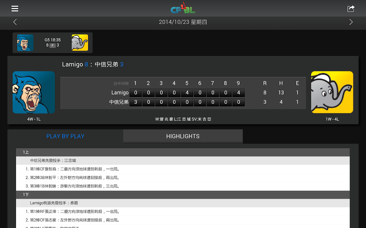 Chinese Professional Baseball official APP, allowing you to watch online CPBLTV and schedule tables.