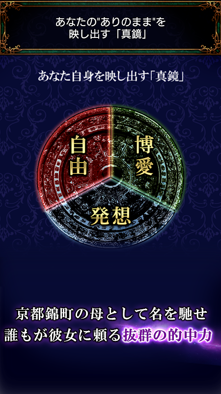 あなたの性格・愛・使命を映し出す鏡からそれぞれについて詳しく視ていきます。「真心(性格)」、「真性(愛)」、「真理(使命)」と分けてあなた自身が理性として感情としてどのように考えるのかが明らかになります。