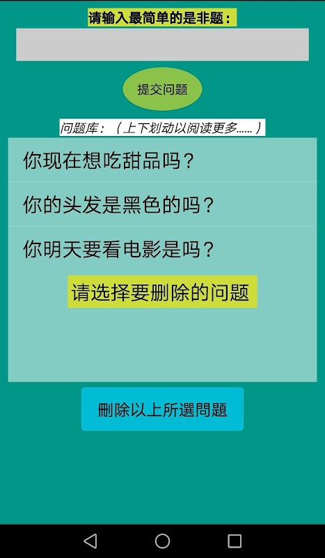 (1)最简单的问题。 (2)必须为是非题。 (3)问题中提及的时间要清楚及准确,譬如:现在、今天、明天、下星期......对于未来太长远的问题将难以确定。 (4)迅速回答而不经思考。 (5)感受内在通道的联系。 (6)不透过情绪或意志的回答。 (7)如果你有34-20通道,不要过度使用此应用程式作答。 (8)宜请密友或家人填写问题。