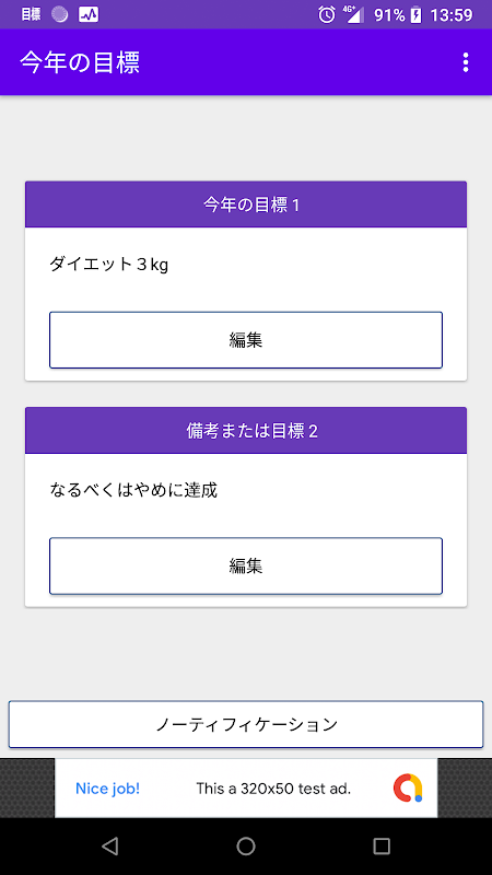 About 今年の目標 ゴール 通知 ノーティフィケーション