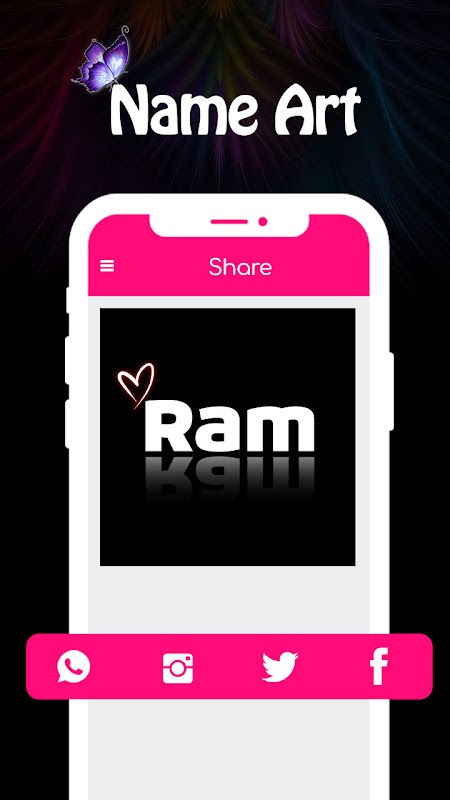 نام آرٹ تتلی مفت میں ڈاؤن لوڈ کریں اور اپنا نام فوٹو پر مختلف انداز میں لکھیں!