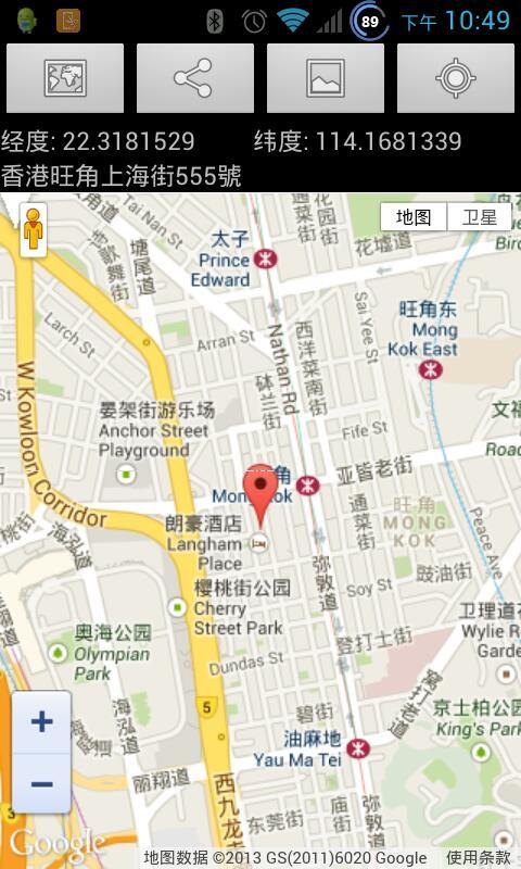 并且可以把经纬度、地址、地址连结、街景连结,传送给友人,对方使用google map的导航或是