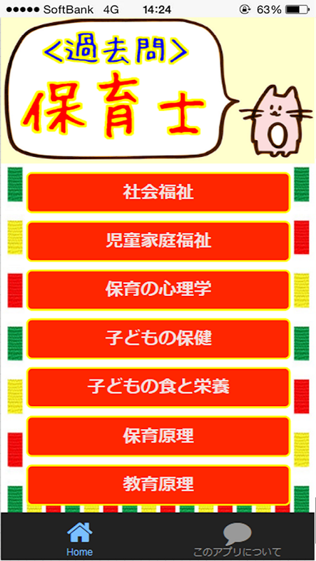 このアプリは、保育士試験の合格にむけて過去問を集めたアプリです。