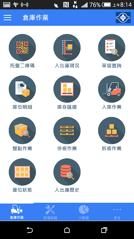 [主要功能]提供企業內客戶於行動裝置維護倉庫、查找庫存、信息紀錄等功能。
