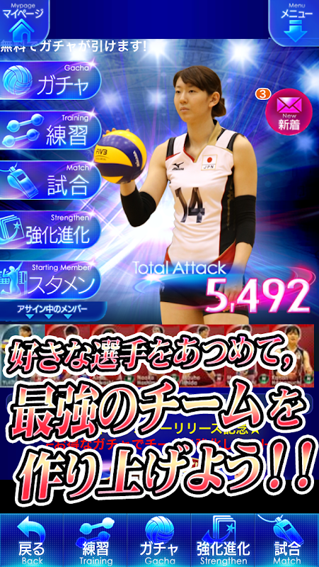 全日本女子バレーボールのアプリが登場!あなたが監督になって、実写・実名の選手カードを集め自分好みの最強のチームを育て上げよう!