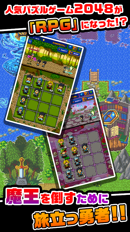 2048パズルを駆使して強い勇者で魔物を退治じゃ!