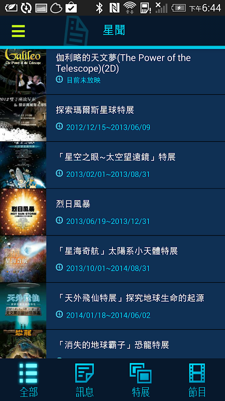 南瀛天文館導覽APP,提供館內即時訊息、特展以及電影節目,更提供展館交通方式、導覽解說等參觀資訊;天文挑戰單元,可讓民眾透過簡單的答題互動,學習天文小知識。