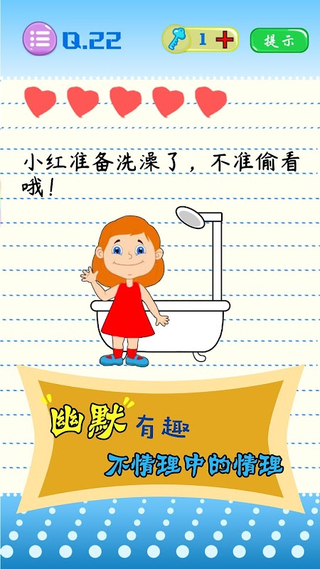 我们集思广益,为各位玩家提供了众多轻松诙谐的关卡,幽默中蕴含智慧,烧脑中不乏趣味,无论你是百科全书还是一无所知,无论你是双商超绝还是呆若木鸡,这里都有你发挥的地方。游戏可以是绞尽脑汁苦思冥想,也可以是豁然开朗仰天大笑,哈哈哈哈。。。