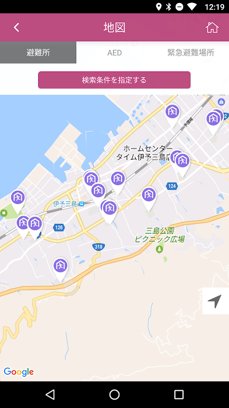 愛媛県四国中央市における自然災害の有事に備えて、あらかじめ避難所やハザードマップを確認できるよう、防災意識を向上していただくための防災ガイドアプリです。