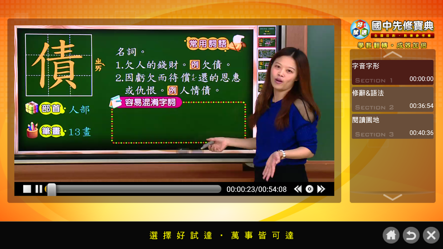 針對將進入國中或高中的同學,「好試達◎先修寶典」精心規劃,集合全國名師,錄製全新課程,讓同學使用隨身載具或電腦,複習之前內容並預習新課程,奠定第一志願的基礎。