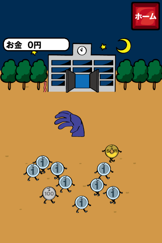 1.「お金を集めるボタン」で、お金をどんどん集めます。(ただしプレイできるのは触手が5回進化してからです。)