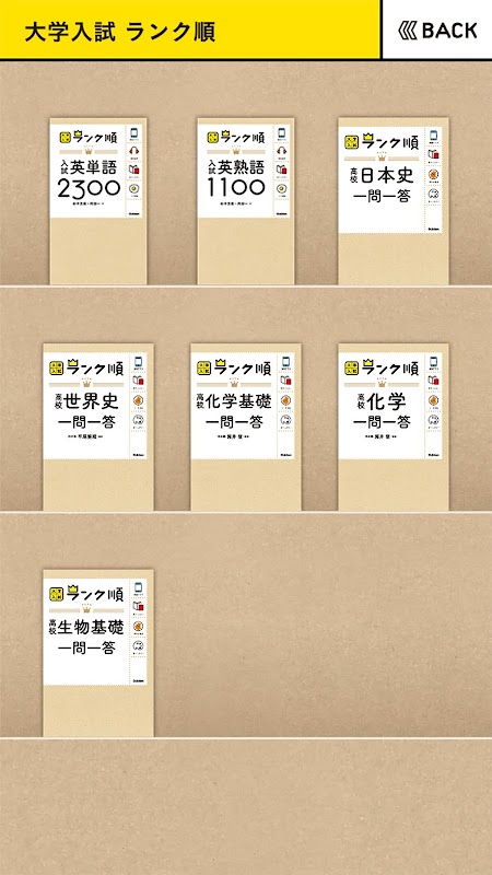 یونیورسٹی کے داخلے کے امتحان کا درجہ ترتیب "داخلہ امتحان کے انگریزی الفاظ 2300" "داخلہ امتحان انگریزی محاورے 1100" "ہائی اسکول جاپانی تاریخ کے سوال و جواب" "ہائی اسکول کی عالمی تاریخ کے سوال و جواب" "ہائی اسکول کیمسٹری کے بنیادی سوال اور جواب" "ہائی اسکول کیمسٹری سوال و جواب" "ہائی سکول بیالوجی کے بنیادی سوالات اور جوابات"