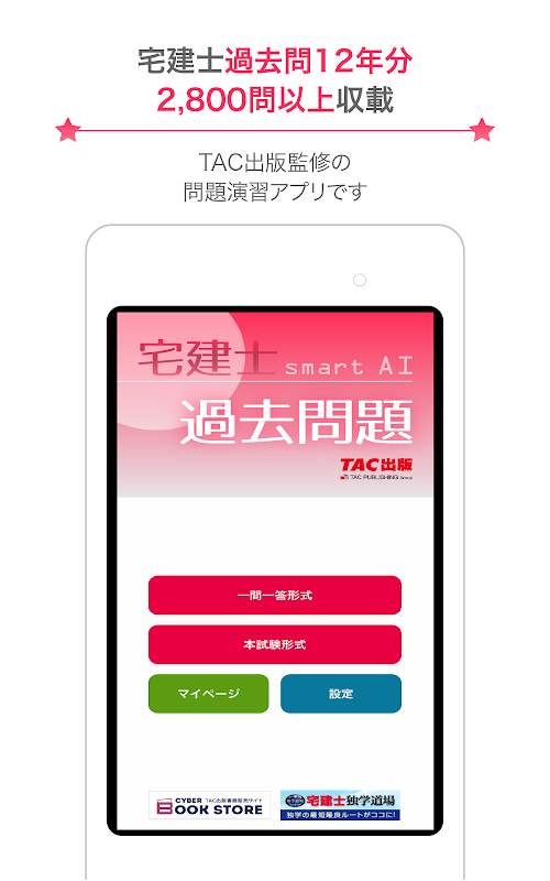 本アプリは、TAC出版宅建士独学道場と一体となった問題演習ツールです。