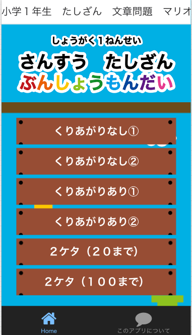 小学校1年生で習う算数の「たしざんの文章問題」を集めた無料学習アプリです。