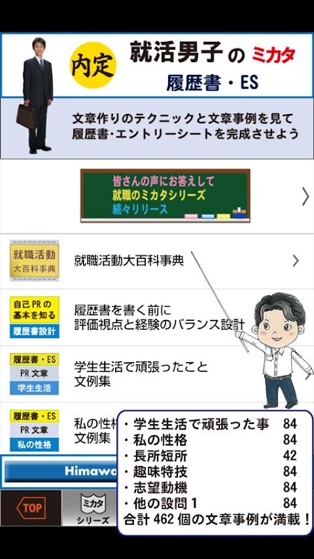 履歴書・エントリーシート(ES)の文例集アプリ 男子版です。