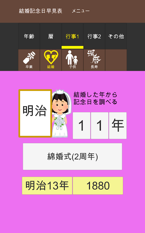 کے پرانے ورژن 年齢早見表/犬猫年齢、西暦、入学卒業、結婚、子供、長寿、恵方