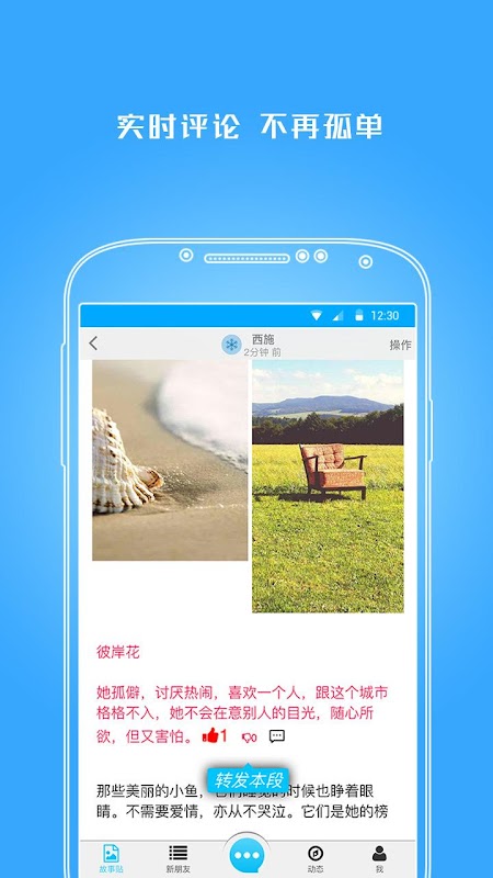看帖结交新朋友 ---- 大家在故事贴里相遇,因为一篇共同喜欢的文章相知。小伙伴们一起指点文字,同时也为朋友们找出一篇文章中最精彩的段落,节省了朋友们的宝贵阅读时间。