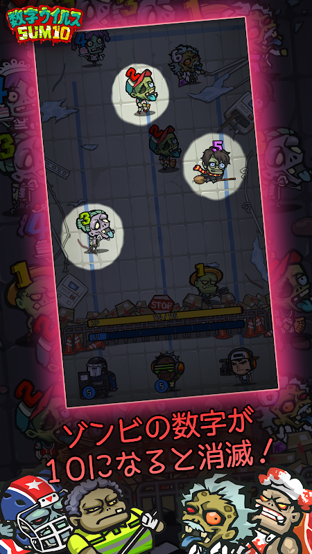 ·複数のゾンビをタップして合計を10にすると、選んだゾンビたちは消滅します。