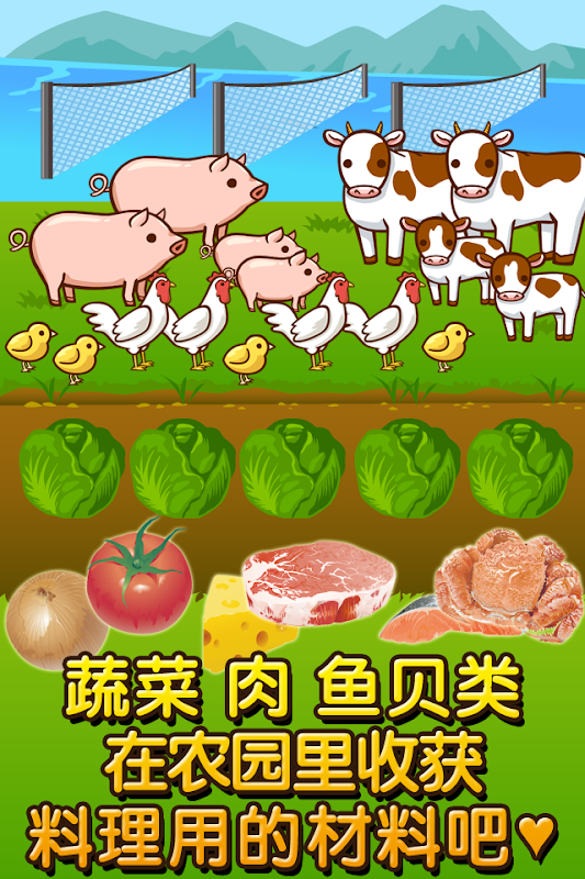容易让人沉迷于日式家庭餐厅的游戏!!在农园里收获食材后制作出美味的料理吧!完成的料理后放到店里贩卖,努力成为这个日本第一的家庭餐厅吧〜!