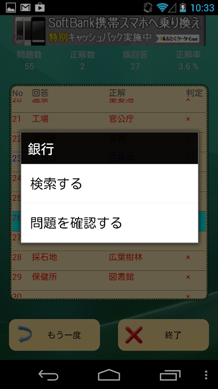 ・結果画面から正解の項目について調べる検索機能