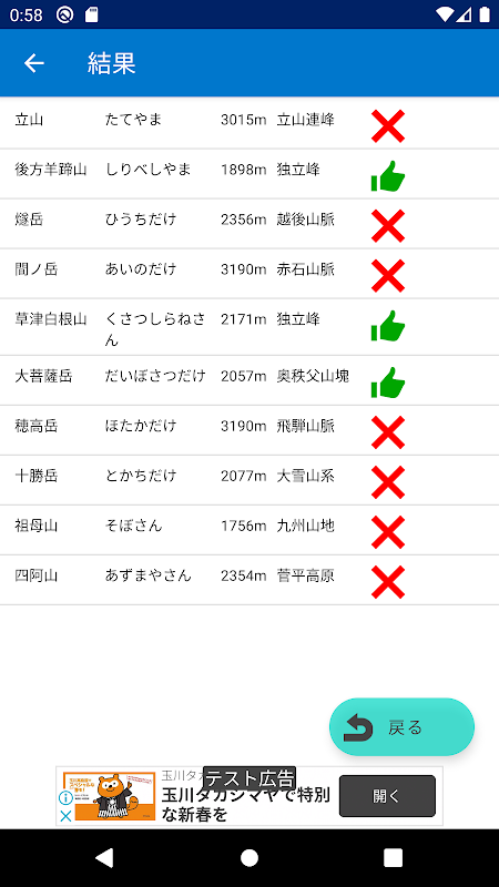 日本百名山の写真から4択で山名を当てるクイズ。