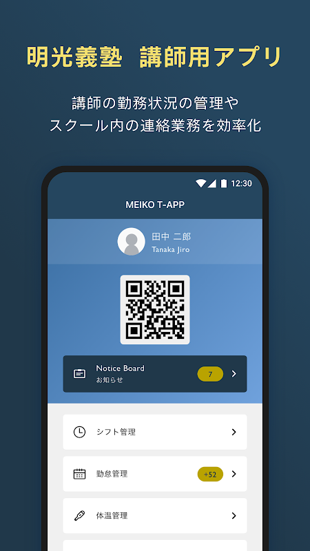 ◆ انفرادی ہدایات کے لیے ملک میں نمبر 1 طالب علم Meiko Gijuku کے انسٹرکٹرز کے لیے آفیشل ایپ◆ ایسے فنکشنز سے لیس ہے جو اسے اور بھی آسان بناتے ہیں، بشمول "کلاس روم رابطہ"، "حاضری کا انتظام"، اور "شفٹ مینجمنٹ"!