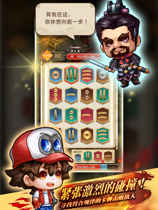 通过选择符合一定规律的卡牌来克服困难达成目标,开动脑筋完成关卡!可是也会有其他人来阻拦,努力战胜他们!