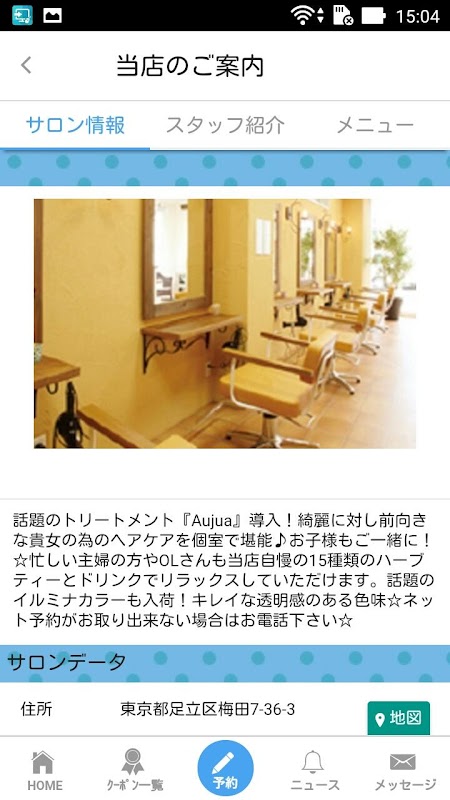 来店履歴や前回スタイル写真、メニューなどの確認も出来ます。