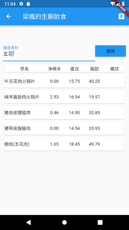 3. 食材查詢新增熱量等訊息
