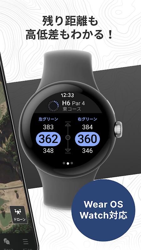 Wear OS واچ کے ساتھ بھی مطابقت رکھتا ہے! کورس کا انتظام مفت میں شروع کریں۔ ہم GPS کے نقشوں اور ملک بھر میں کورسز کے ڈرون فضائی ویڈیوز کے ساتھ اسٹریٹجک گولف کی حمایت کرتے ہیں۔ اس کے علاوہ، پرواز کے فاصلے کی پیمائش اور کورس نیویگیشن جیسے مختلف فنکشنز آپ کے دور کو جاندار بنائیں گے۔