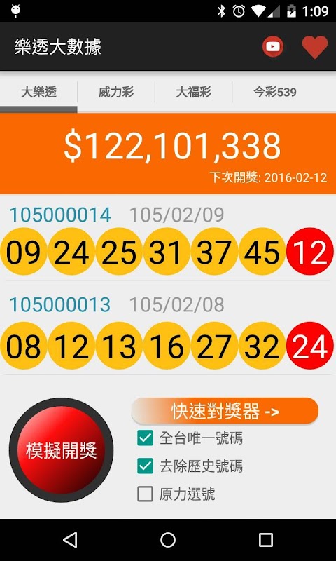 2. 開獎資訊如果有誤, 以台彩公告之獎金與號碼為主.