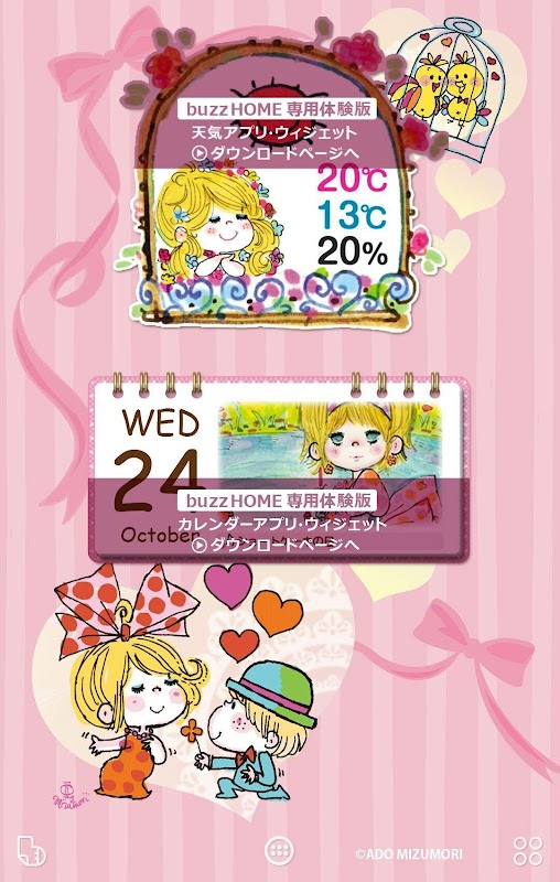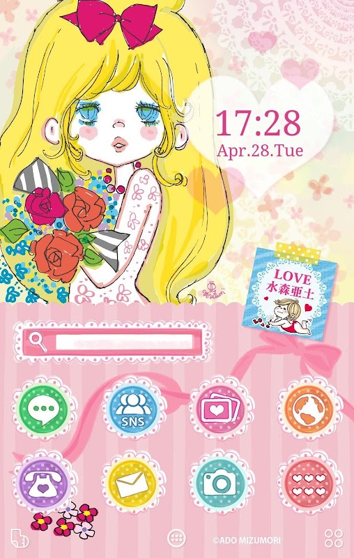 壁紙画像もアイコンもファンシーでロマンティックは水森亜土の世界観たっぷり。