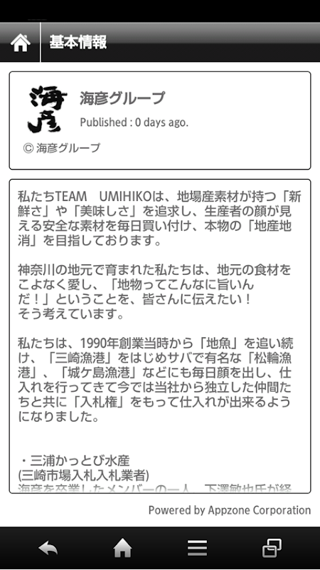 神奈川県の地場産素材が持つ「新鮮さ」や「美味しさ」を追求し、生産者の顔が見える安全な素材を毎日買い付け、本物の「地産地消」を目指しているお店、「海彦グループ」の公式アプリです。