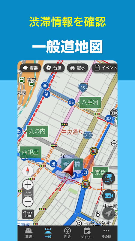 渋滞情報マップ(交通情報,規制,通行止,高速,料金検索)