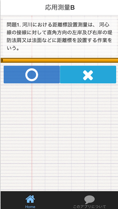 測量士補試験の法規、基準点測量、水準測量、地形測量、写真測量、地図編集、応用測量の全てのジャンルの問題を○×テスト形式でまとめた学習アプリ。